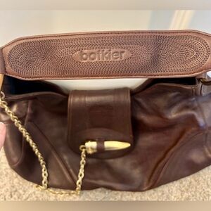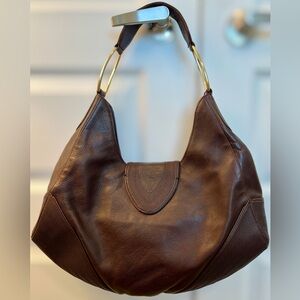 Botkier Brown Leather Shoulder Bag with Gold Accents