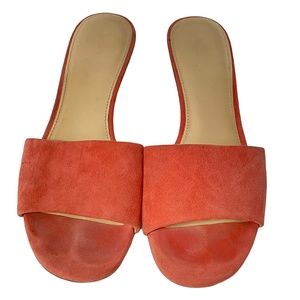 Botkier Carlie Mules 7 Coral Orange pink Suede Wooden Heel Slip-on Boho genuine suede leather