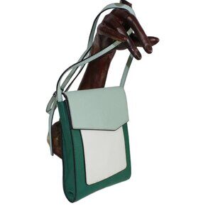Botkier Cobble Hill Two Tone Green White Leather Cross Body Shoulder Mini Bag