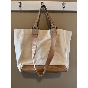 Botkier Cotton Canvas Woven Tote White & Brown Medium Purse
