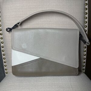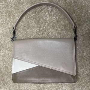 Botkier | Crosstown Cobble Hill Color Block Medium Flap Satchel Cream and Brown