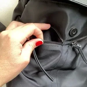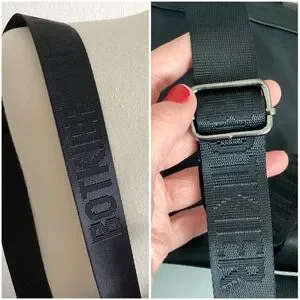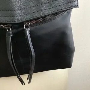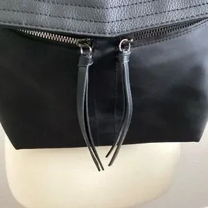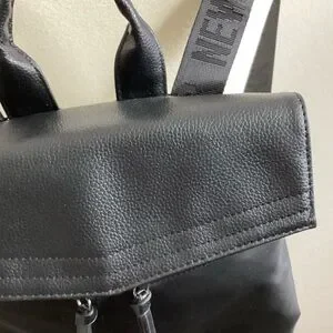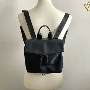 Excellent condition, no flaws little black backpack. With logotype, adjustable straps, loop handle top, two front zip pockets, large interior pouch and smaller zip interior pouch. Fold-over, snap closure top.