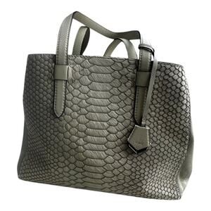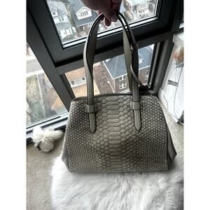 Botkier New York Embossed Leather Tote Bag Snakeskin Look Shoulder Purse White