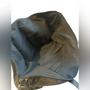 This Botkier New York Bond Tote Bag Nylon Zipper Carryall in Black is very gently used and in good pre-loved condition. It features interior pockets and exterior zippered accents for a touch of bikercore edginess. Measures approximately 11.5”w at the base of the bag (or 18.5”w at the top of the bag) x 11.5”h x 7.25”d, with a 9.5” handle drop.
