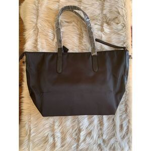 Black Botkier New York Bond tote bag. Fabric: l Technical weave. Leather and exposed zip trim. Zip pockets open at the sides. Top zip and lined interior with 2 pockets and 2 card slots.