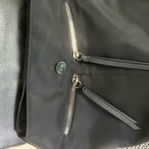 Fits all the essentials… wallet, phone, small makeup bag, height can fit a 16 oz water bottle.