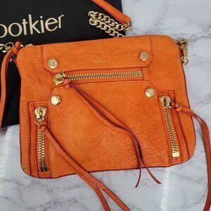 Stylish and vibrant, the Botkier Orange Crossbody Bag is perfect for adding a pop of color to any outfit. Featuring a sleek design with gold accents, this bag is both functional and fashionable.