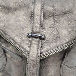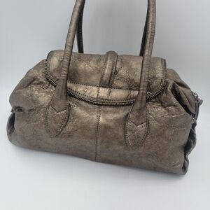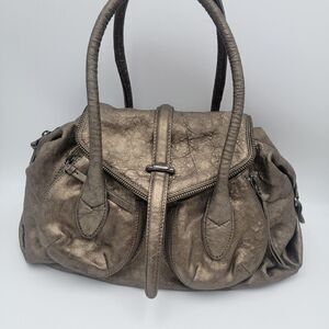 Botkier Pebbled LTR Metallic Pewter LTR Satchel Zipper Shoulder Bag Purse