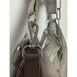 Botkier Leather Shoulder Bag Womens Large Gray Slouchy Hobo Purse Silver Hardware