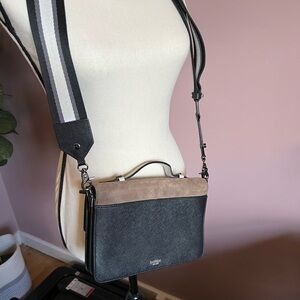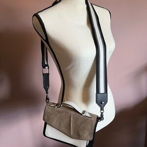 Botkier Tan and White Crossbody Bag with Suede and Adjustable Strap