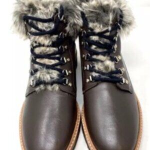 Botkier Winter Faux Fur Trim Gum Sole Women's Boot Brown Leather Upper Size 7