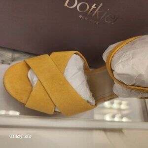 Botkier Women’s Yellow Plateau Suede Slingback Block-Heel Sandals NIB. Size 10. No rips/stains/scuffs or tears. NIB/Original box packaging. Box in excellent condition. Smoke free home. No odors. All offers are welcome. Thank you!