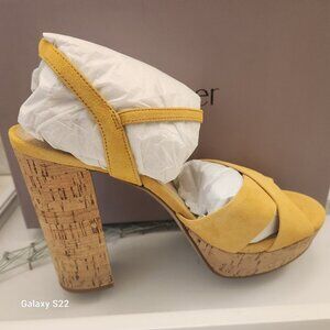 Botkier Women’s Yellow Plateau Suede Slingback Block-Heel Sandals NIB