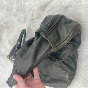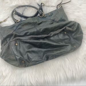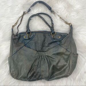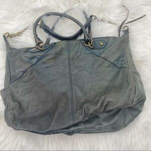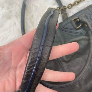 Gorgeous patina on this soft supple leather bag with two sets of handles- one a clutch style and the other a shoulder strap. Two areas with flaws- shown. The corner has some wear and some minor wear on the center of the bag. Otherwise normal light scuffing typical of this leather.