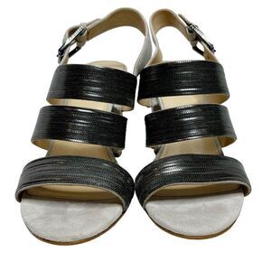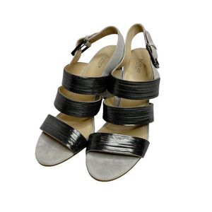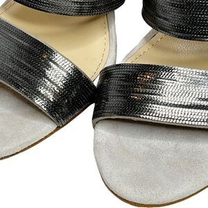 Botkier New York Genesa gray block heel sandals size 8.5. Sling back with adjustable buckle. 4” covered block heel. Metal covered straps. Cushioned footbead. Textile/leather upper. Great condition. Little wear and no flaws.