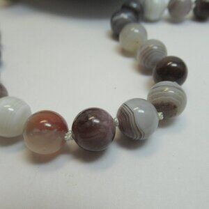 This listing is for the hand knotted 10mm Botswana Agate gemstone bead necklace pictured. It is new and has never been worn. It is 24.5 inches of continuous knotted beads. This necklace was hand knotted by me using 58 high quality Botswana Agate beads and durable Griffin Nylon cord. This necklace has a nice earthy vibe that works year round. It is a beautiful mix of white, cream, grey and tans.