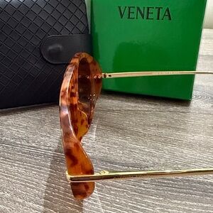 Chic aviator sunglasses with amber frames. Sleek design by Bottega Veneta. Ideal for stylish outings.