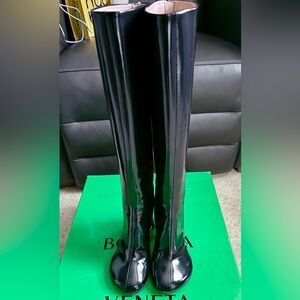 Elegant black heeled boots with a glossy finish. Perfect for a chic look. Make me a REASONABLE offer please.