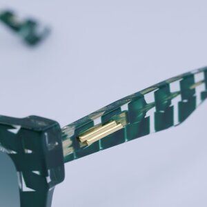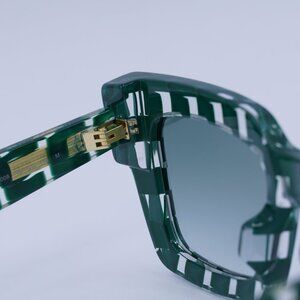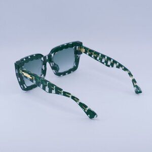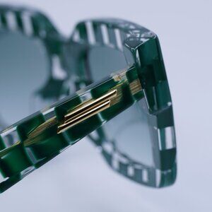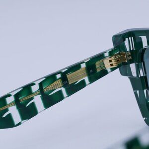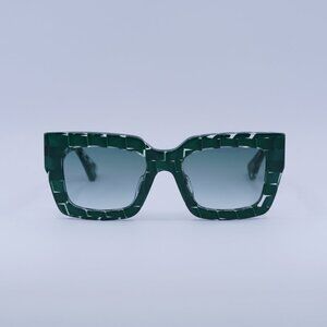 Authentic Bottega Veneta BV1212S 008 sunglasses in dark green pattern on transparent frame.