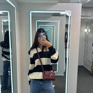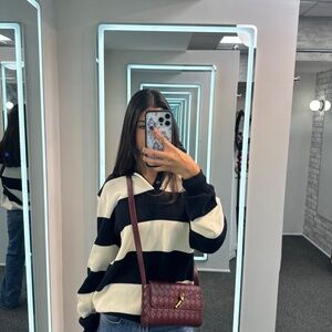 Burgundy leather in the classic Bottega Veneta intrecciato weave, gold-tone hardware, adjustable crossbody strap that can be tucked in to make the bag a clutch, magnetic and pull through closure at front, single interior zip pocket