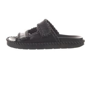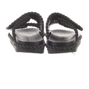 Stylish black slide sandals with braided straps. Perfect for casual wear.