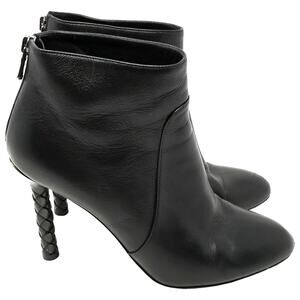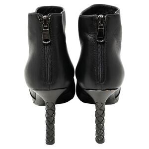 Bottega Veneta Black Leather Braided Heel Ankle Boots 37.5