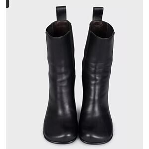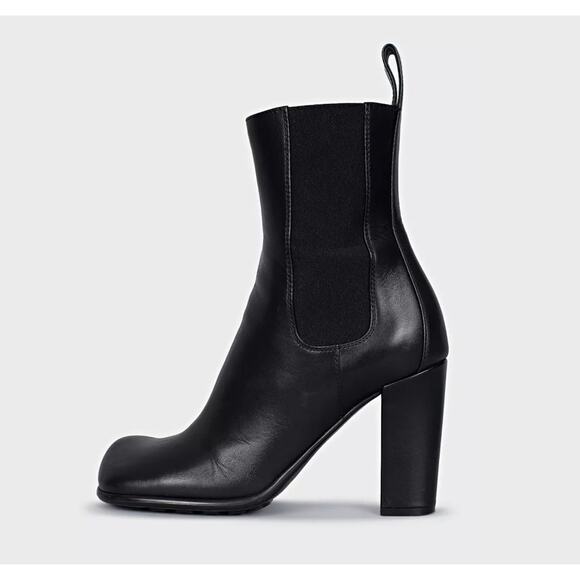Step out in style with these sophisticated black leather ankle boots from Bottega Veneta. These boots feature a modern square toe and a sleek, slip-on design.