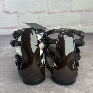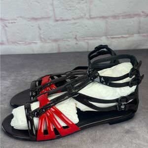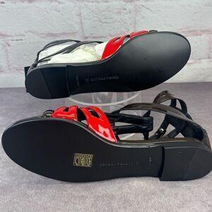 Bottega Veneta Black/Red Patent Leather Flat Strappy Sandals Size 39
