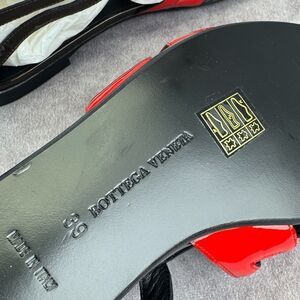 Authentic Bottega Veneta Black/Red Patent Leather Flat Strappy Sandals Size 39