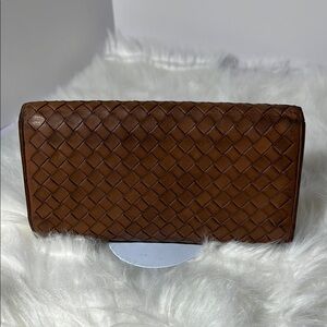 Elegant brown woven leather clutch. Perfect for any occasion. See pictures for details of condition.