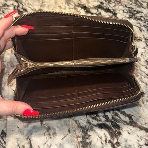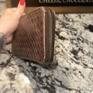 This Authentic Bottega Veneta long brown zip around wallet is a luxurious accessory with style and functionality.