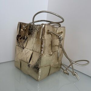 Bottega Veneta Cassette Interciato Gold Leather Woven Bucket Bag