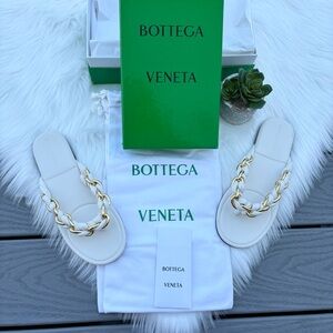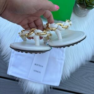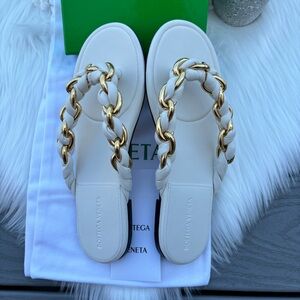 These flat 'Dot' sandals have a '90s-inspired thong silhouette made from padded leather that wraps around gold-tone chainlinks. The soles are dotted with rubber for superior grip.