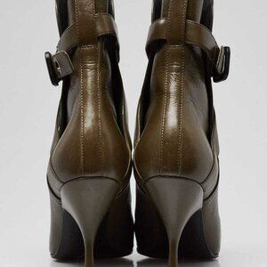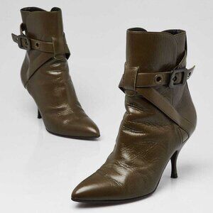 Bottega Veneta Dark Green Leather Pointed Toe Ankle Booties Size 6.5/37
