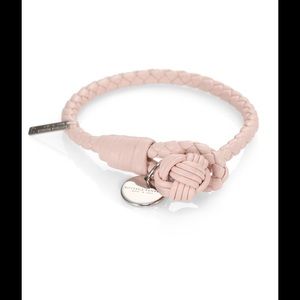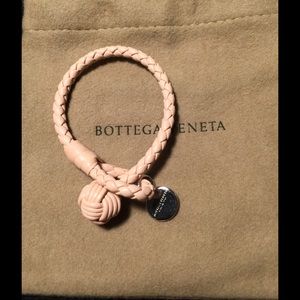 Auth Bottega Veneta Intrecciato Nappa Single Strand Bracelet. Worn less than three times. Purchased from Bottega Veneta website. Intrecciato nappa leather strap. Silver tone hardware. Knot and hoop closure. Full length 6.6 inch x width 0.2 inch.