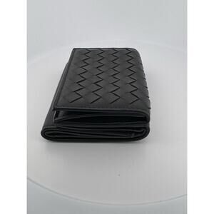 A refined essential crafted for everyday elegance, this authentic Bottega Veneta Trifold Wallet features the brand’s signature Intrecciato woven pattern in supple black Nappa leather. Compact yet practical, the wallet opens to reveal a sleek interior with multiple card slots, a bill compartment, and a snap coin pocket — embodying Bottega Veneta’s timeless sophistication and artisanal craftsmanship.