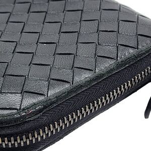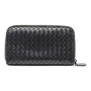 Bottega Veneta Intrecciato Leather Zip Around Wallet in Black