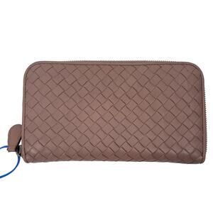 Bottega Veneta Intrecciato Zip Around Long Wallet Leather Weave Light Pink