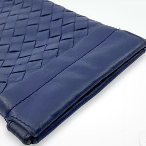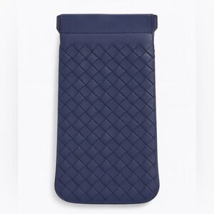 Elegant blue woven leather Bottega Veneta Intrecciato Eyeglass Case in Navy Blue