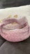 Lamb skin suede in Mirth Washed (lilac) Made in Italy. This Jodie purse is masterfully assembled from strips of soft lamb suede. Handle drop is 2.6”. Height: 5.5”. Width: 9.4” approximately. Just came back from Purse Rehab-cleaned and conditioned. See photos!! Gorgeous purse! Dust bag included. I took pictures indoors and outdoors-hard to capture color! In sunshine and shade🌸 This purse has been used-leather shape relaxed some.