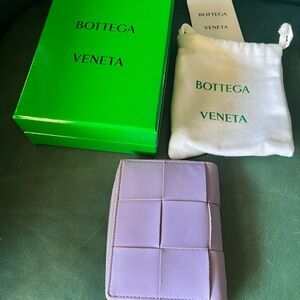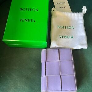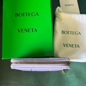 Chic lavender wallet with signature woven design. Perfect for adding a touch of elegance.