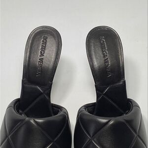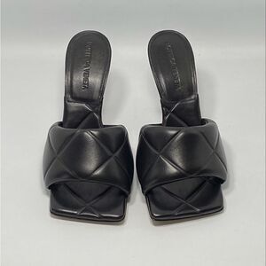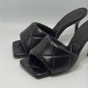 Diamond quilting adds texture to this pair of chic mules with a stiletto heel.