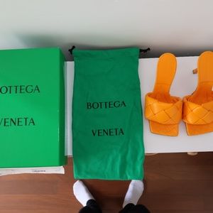 Beautiful classic mule style with signature Bottega crosshatch leather. Bright tangerine leather makes it easy to get an amazing outfit together. Super comfy and soft lambskin leather.