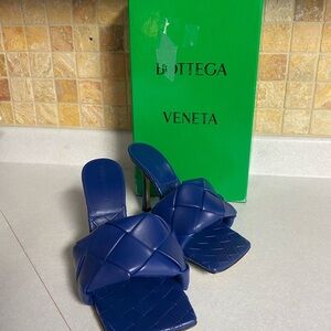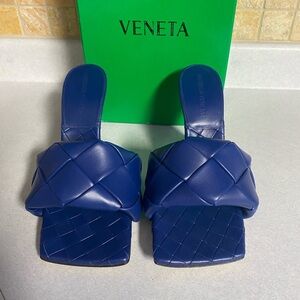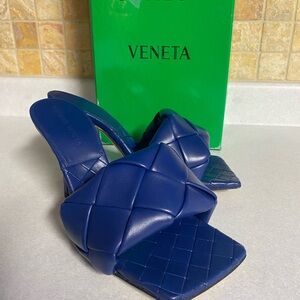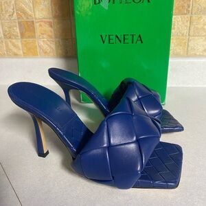 Bottega Veneta Lido Sandal Heels Quilted Square Toe Cruise Blue 37
