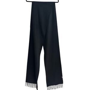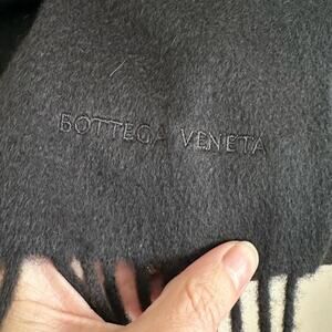 Bottega Veneta Logo Stamped Scarf Black Wool Cashmere Fringe Ends