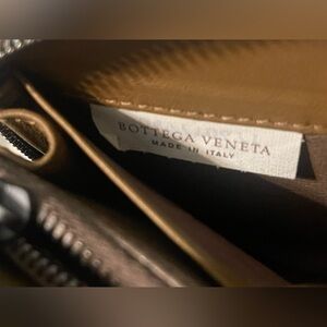 This Bottega Veneta wallet features a solid pattern and is made of high-quality leather in a beautiful latte brown color. This is a long wallet. It has a zip-around closure and is designed for women. The wallet is 7.5 inches in length and 4.25 inches in width, making it the perfect size for everyday use. It is the long continental style wallet.