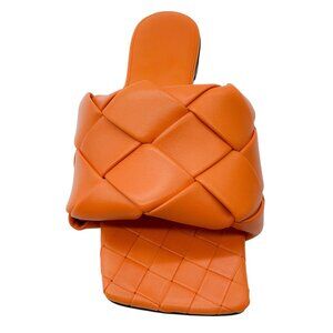 Bottega Veneta Orange Lido Intrecciato Leather Flat Slide Sandals