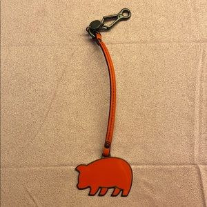 This Bottega Veneta artisan (hard to find) made accessory can be used as a keychain or even a charm for your bag of any kind. This red leather pig keyring features clip fastening hardware and accented with black detailing. Was a limited run production.