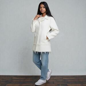 Experience refined Italian craftsmanship with this Bottega Veneta Pre-Fall 2019 Bouclé Jacket, an elegant piece that perfectly embodies the brand’s modern sophistication. Tailored from textured bouclé in a luxurious winter white hue, this jacket offers a timeless silhouette with subtle structure and impeccable detailing.
