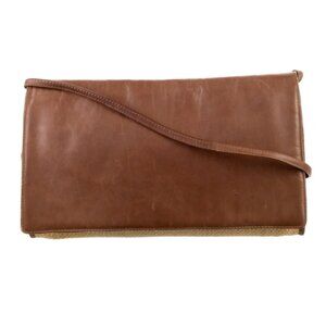 Bottega Veneta Raffia Crossbody Bag Brown Leather Trimmed w/Detachable Strap